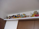 新築の分譲マンションに引越したため不要となってしまった板をもう一度、白く塗り直して、子供部屋のシェルフとして生まれ変わりました。(下段)