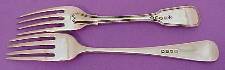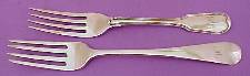 ■2001.8/28 久しぶりにeBayで落札しました。8/23にアメリカから発送されたのですが、1週間もかかりませんでした。PayPalで支払いをすると早いですね。2本目の大型スプーンですが、前回のものよりも少し小さいです。逆にちょうどよいかもしれません。$70で送料が$5.5でした。約230年前のものとは思えないくらいきれいです。我が家で一番、古いものになりました。 Silver serving spoon - sumner & Crossley 1777 [$70] The sterling silver spoon is in excellent condition with little signs of use. Hallmarked as London 1777 and made by William Sumner and Richard Crossley. Measures 8 1/4 with a silver weight of 1.9 ounces. ■2001.9/4 1800年前半のフォークを2本落札しました。初めてのフォークです。$65と少し高めでしたが2本なのでこんなもんでしょうか? 先端が少しすり減っていて長さがそろっていない部分がありますが、使われていた証拠でしょう。あとは、ナイフが欲しいなあ。 2 Sterling Silver Forks 1808 and 1816 [$65] The forks are both is very good condition. The fiddle pattern has a LE monogram, made by William Eley and William Fearn - London 1816 and measures 6 3/4 inches. The old English is hallmarked as London 1808 and has an M monogram with a little tine use. Measures 7 1/2 inches. Total silver weight is 3.8 ounces.