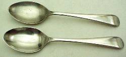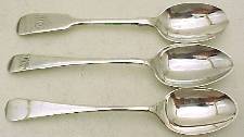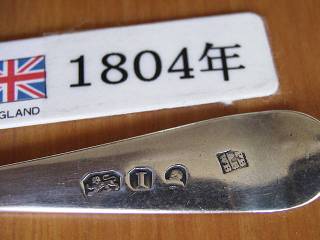 ■2001.2/1 自由ヶ丘にあるアンティークの銀食器の専門店「TEA TIME」でティースプーンを購入しました。店内は、それほど広くはないですが、自由に触れるのが嬉しいです。その時には、1本\2000のティースプーンが目玉商品でした。100本くらいの中から掘り出しものを探すのがおもしろいです。1800年〜1950年くらいまでの間のいろいろな年代のものがありました。私は、その中から1804年のBatemanファミリーのスプーンを見つけました。ホールマークからPeter, Ann & William Batemanのものでした。思わず掘り出し物にニンマリです。さすがに200年前のものなので、ボールに細かい傷はありますが、普段使いには問題ありません。また掘り出し物を探しに行ってこようと思います。C&Sや銅版画も少しですが置いてあります。