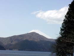 | 芦ノ湖から見る富士山。角度が悪く頭の上だけちょこんとだけ突き出ていた。 |