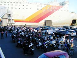 | 大洗港にて撮影。想像以上にバイクの数が多かったことにはちょっと驚きでした。 |
