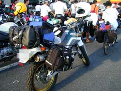 あたしのバイク。今回は長期ツーリングのためこんなに荷物を積んでいます。 |