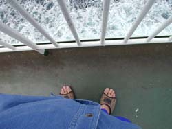 | 8月16日、寝場所と船の揺れに慣れず早起きしてしまう。それからあっちゃこっちゃでぼーっとしながら時の流れるのを過ごす。いつもならこんなに暇じゃないのに・・・よく考えてみようお休みじゃないか、こういう時間がたまにはあっても悪くはないか・・・。 |