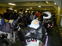 下船前の甲板内での様子。外は北海道なのですがこれがまた暑いんですよ中だけ・・・。 |