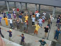 7:20(桃)、朝一番の船で島内を出るため桃岩荘ともお別れ。2日前に盛大なお出迎えをされたということは、お見送りもお出迎え以上にすごかった。まず建物の前に送られる人・送る人がそれぞれわかれ、ヘルパーさんからのお見送りの挨拶がある。そして送る側から大きな声で『いってらっしゃぁ〜い!』と、送られる側の負けずに『行ってきまぁ〜っす!』っと。気が付くと2日前に島内に入りブルーサンダー号に乗ったときはちょっと恥ずかしさというものを感じたのだが、気が付いたら『羞恥心』というものをきれいさっぱりトンネルの向こうに置いてきていたんだと(笑)