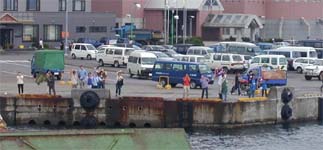 稚内フェリーターミナルの前で記念撮影。 |