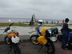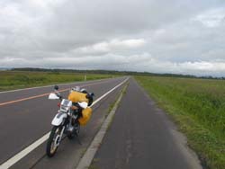 さてすっかしバイクのことから話がそれていましたが、再びバイクに乗り走ることになったのですが、なにしろ天気が悪い。本当だったら宗谷岬から道東に向け走りたかったのですが、台風13号の影響もあった関係で走ってもちょっとつまらん!と判断。道東とは反対の日本海側を走り稚内から約150q先の羽幌に向けバイクを走らせたのであった。 |