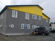 羽幌遊歩ユースホステルの前で。どんよりとした天気のスタートであった。 |