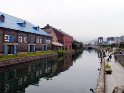昼間の小樽運河から。小樽のメインストリートといってもいいくらい小樽を強調しているところである。 |