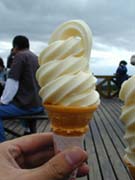 | 清泉寮のソフトクリーム。ここはいつ来てもソフトクリームを買うお客さんが絶えず列をつくって並んでいるくらい人気なのである。 |