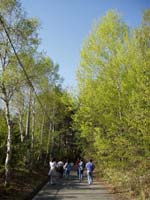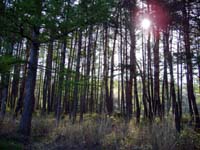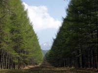 お茶を堪能したあと鉢巻道路を原村方向に走らせると途中カラ松林の中を通るのだが、こちらも天気が良く眺めが良かったのでちょっと散策することに。お弁当を持った家族ずれなども訪れてていたりしてほのぼのしているといった感じであった。 |