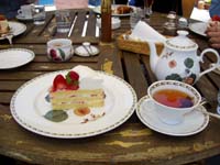その後、天気もいいし大自然の中でお茶をしましょうと、一緒に行動したひとりの女性からの案で鉢巻道路沿いにある『カントリーキッチン』へ行くことに。普段ひとりや複数で行くとき、コンビニや駐車場で缶コーヒーでお茶をするというのはあったけど、まともにお店に入ってお茶をするのはものすごくひさびさであったので、お店を見たときは場違いかなとも思うくらいお洒落だったのにはちょっと驚いてしまった(笑) 食事とお茶する建物がわかれているためお茶のできる建物へ。店内のショーケースには多数の美味しそうなケーキが並び、コーヒーや紅茶などもいろいろ選ぶことができる。今回は旬でもあった『苺のショートケーキ』に『ダージリンティ』を注文。注文したあとに、お店で一番人気のある『アップルパイ』が目の前を通ったときにはちょっぴり『失敗したぁ〜』とは思ったものの、ショートケーキも控えめな甘さで美味しく頂けることができた。 またテラスで食べていたのだが、天気もよく大自然のど真ん中ってこともありすべてにおいて贅沢だなぁ〜っと感じる(笑) |