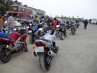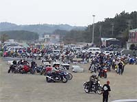 12時頃会場である相良町シーサイドパークに到着。受付は13時からと雑誌には掲載されていたのですが、あたしが到着したときにはすでに受付が始まっていて受付を済ませると『87』という札を頂くことに。おそらく87人目だったのであろう。それからというもの、だんだんとバイクの台数も増え、駐輪場はバイクで埋め尽くされていくのでありました。。 |