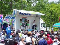 カワサキ車のオーナーになり早1ヶ月ちょっとを過ぎたところ。オーナーになる前からカワサキバイクマガジンを読んでいたのであるが、カワサキはミーティング等イベントが豊富で(単にお祭り大好き人間が多いのかも・・・)雑誌を見ているたび『1度は行ってみたいなぁ〜』っと思っていたのでした。 そしてカワサキ車のオーナーになり、いつでも参加対象(別にすごいことじゃないんだけど)となり、草津で開催されるとの情報を手に入れるが、『ひとりで行くのもなぁ〜』っとちょっと拒む。そこへのんツーの2代目主催者であるうたさんから『ミーティングに行きませんか?』とのお誘いメールが。すぐに『喜んで』とのお返事を。 っで当日、待ち合わせ場所の高坂SAへ向けてはしる。エンジンも順調、道路も順調ということでコンディション万全!やはりカワサキというイメージが強かったのか走る方向カワサキ車が多く走っているように思えた。目と気持ちの錯覚だったのかなぁ〜 っで高坂SAに到着。やはりバイクはカワサキ車が多く、おそらく目的地も一緒なんだろうなぁ〜っと缶コーヒーを飲みながら周りを眺める。 渋川伊香保インターから草津に向けて下道を走るが、やはりカワサキ車ばかりが多かったような・・・。会場である草津高原に到着。イベントは後半の最盛期だったため人の数も多く会場内は天候に負けず熱かった。(この日ものすごく熱かったんです、気候。) |