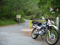 旧道を走破し、次に向かうのが一度走ってみたかった大菩薩峠をつなぐ嵯峨石裂石林道。数年前までダートが残っていたようであるが、今は全線舗装されていたためちょっと残念であったが、はじめて走ったためけっこう楽しかった。特にところどころ怪しい道や林道の入口があり、『うぅ〜ん 入ってみたぁ〜い』と思ったのだが、連日の雨で地盤が悪いんじゃないかというのと、平日で交通量なども少ないのでなんかあったときの助けがないだろうということで今回は断念することに。梅雨明けしたら挑戦しよぉ〜っということで今回は入口のみを散策してみました。 |
