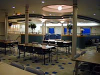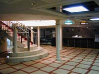 | 船内ロビー。夜中は窓口など営業はしていないが、朝・昼・夕とは綺麗なおねーさんが窓口に立って案内しているのである。 |