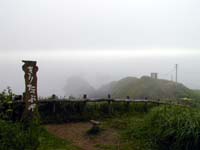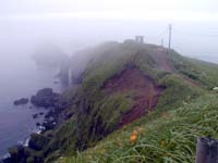 | 納沙布岬の灯台。写真でもわかるように周囲は霧で真っ白でした。 |