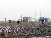 道路沿いにはこのように昆布が干してある風景をよく見かけた。 |