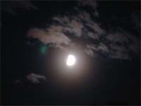 夕食も食べて片付けもして落ち着いたのが夕方7時半ぐらい。寝るにも早かったのでテントの中で日記を付ける。それでも8時半、テントから出てみると月がキレイに見えていたので思わずデジカメと三脚を用意しひとり撮影会をすることに。でも9時過ぎ、こうなったらっと寝てしまいました。