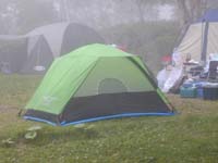 今夜の寝床決定!ってことで北海道初!テントを広げてみました。やはり1.5人用ってことだけあって周りのファミリー用に比べるとものすごく小さかったのでありました(笑) |