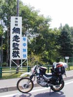 網走監獄内を1時間ぐらいだったと思うが駆け足で見学(なんにしろ広くて全部見るとしたら半日かけないと見切れない)したあと美幌峠に向かって走ることに。途中お腹が減ってきたのでなにか美味しいものと地図を見ていると女満別空港のラーメンが美味しいとの情報を得たため空港に寄り道をする。 ローカルな空港なため規模は小さくラーメン屋さんも簡単に発見できた。『オホーツクラーメン』といって、海の幸が入ったラーメンでお昼ご飯に食べるにはちょうどいいといった感じであった。 しかし空港内の駐車場に車やバスが止まっているのは自然であるが、荷物満載のバイクが止まっているというのはちょっと不自然かなとバイクを眺めながらそう思うのであった。 国道243号線で美幌峠へ。網走方面は天気がよく暑かったぐらいなのに美幌峠に近づくと同時に少しずつ霧がかかり寒さを感じてきた。途中寒さに耐えきれず荷物と一緒にしばってあったトレーナーを着込む。 美幌峠を越え屈斜路湖に降りてくる頃にはいくらか天気もよくなり寒さも解消されるかなと思っていたのだが期待は大ハズレ。天気も悪く寒い。今夜は和琴半島にあるキャンプ場でテントを設営しようかと思ったのですが、明日から台風の影響で天気が崩れるとの話を聞いていたため和琴半島には行くがテント設営にちょっとためらいを感じる。地図を見ると近くにライダーハウスがあるようなので行ってみたが入り口前にガラの悪そうな人達(見栄えだけなのかもしれない)がいたのでそこもためらうことに。 っとなんだーかんだーしているうちに時計は3時半過ぎを指していた。硫黄山があったので休憩がてらに見学。そんなことをしているうちに時間はどんどん遅くなって行きそうだったので宿泊用のガイドブックで宿確保に専念する。予約をする時間にはちょっと遅く、しかも天気が不良なため予約できるかと心配であったがあっさりと予約が取れることに。 宿に入る時間までちょっと余裕があったので摩周湖まで行ってみようとバイクに近づくと、ちょうど駐輪場に入ってきたライダーが雨カッパを着ているのでは。思わず『雨降っているんですか?』と聞いてみると『摩周湖の霧がすごくてカッパ着ないとビチョビチョになっちゃうんですよ』っと。 さすが霧の摩周湖、どんなものかとさらにワクワクしながら摩周湖に向けて走り出したのですが・・・摩周湖まで行く途中の道がこれまたすごい霧で視界1メートルないってところだったかな。しかも日が暮れ始めていたのでますます見にくい。これはちょっと危ないかなと思い今回は途中で断念をすることに。しかしUターンするにもひと苦労したなぁ〜(涙) っで予約した宿・ましゅまろに直行するのであった。 |