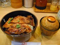 サクサクパイに満足したところで、次の目的地『豚丼』を求めて歩き始める。ガイドブックやあたしがツーリングで愛用しているツーリングマップルでは『ぱんちょう』という豚丼のお店が紹介されているが、人気のある店って並ぶし実際に食べてみると『こんなもんなのかなぁ〜』という店が多いんでここはあえて避けることに。さて向かう先は再び帯広駅へ。YHのヘルパーの女の子に『豚丼の美味しいお店知ってる?』と聞いたところ、帯広駅内にある『ぶたはげ』というお店がオススメとのことだったのでそこへ向かうことに。店内はカウンターとテーブル席がふたつだけという小さな店内ではあったが、肉を焼いているところまで見れるので納得かなと。注文方法は牛丼屋だと『並・大盛り・特盛り』という段階になっているが、豚丼は『4枚・6枚・8枚・・・』と肉に枚数になっている。量の多いので攻めていこうかと思ったのだが、先ほどサクサクパイを食べてしまった関係上やむおえず『4枚』にすることに。焼き方は炭の上に網を置きその上で肉を焼くといった焼き方。なんとも美味しく食べれそうな焼き方をするんだぁ〜っと。 |