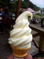 中央道・須玉インターを降りたのが午前9時、それから国道141号線の裏道とでもいうのでしょうか、県道で清里方面に向かったのですが、走っていた景色がよかったため思わずデジカメを出して撮影してしまう始末。っでこのことをきっかけにアクシデントが。『あっ!』と思った景色がよかったのだが通り過ぎてしまったためUターンしようとしたら思わず『ぐわしゃぁ〜ん!』とZR-7S初の立ちゴケ。マフラーにキズが付いてしまうし、ハンドルのセンターがずれちゃうし(涙)でした。 一応キャンプ場のメドが付いたのがお昼過ぎ、せっかく八ヶ岳に来たら清泉寮のソフトクリームと遊景社のほうとうはお決まりだなと勝手な解釈で食べに行った。 遊景社でほうとうを食べのんびりしていたところへ団体(っていっても5・6人だけどね)が入ってくる。そのうちのおひとりにどうも見覚えがあるなぁ〜と確認してみると、昨年はじめて遊景社に一緒に来たライダーさんではないですかぁ〜(笑)あまりの偶然に思わずビックリ!立ちゴケしたことなんかすっかり忘れ、楽しいひとときを過ごしたのでありました。 |