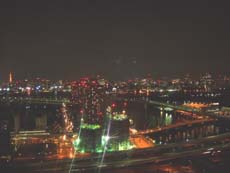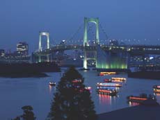 | 夕方お台場に移動。レインボーブリッジの周辺には屋形船がいっぱい。 |