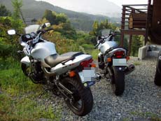 | 落合にある木曽路ふるさとYHで朝を迎える。 建物がちょうど丘の上とでもいうのでしょうか高い位置にあるため、テラスからは中津川市街だと思うが一望できると行った感じ。また、空気も秋の朝を感じさせるそんな気持ちのいい朝だったのであります。 そうそう、昨日到着したときにとっても偶然に遭遇しました。それはというと、あたしが今回乗ってきたバイクと同じバイクがYHの前に止まっているではありませんかぁ〜。正直なところ販売台数の少ない車両なので、ツーリングに出掛けたときに駐車場やすれ違ったときに見かけると『おおっ〜』ってなんか嬉しくなっちゃうのですが、まさか宿泊先で同じ車両のオーナーさんに出会えるって思うとなんかウキウキしちゃいまして(笑)っでオーナーさん確認しちゃいました。関西から来た方で、車両は1年前の春に購入とのこと。その前はCBR600に乗っていたとのこと。うぅ〜んずいぶんイメージ変えちゃったんだなぁ〜っと。 |