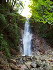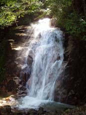 馬籠を越えさらに道を先に行くと、『男滝 女滝』という看板が目に入ってきたので立ち寄ってみることに。 駐車場前の看板を読んでみると、木曽に街道が出来て以来から旅人に名所として親しまれて憩いの場たったとのこと。確かに、駐車場から一歩足を踏み入れてみると天然のクーラーに入っているのではと思うくらい涼しく、確かに昔から憩いの場といっても過言でないかなと。 |