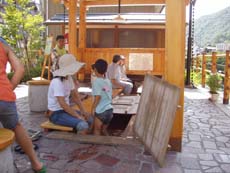 朝食前に出発準備をし、朝食後すぐに出発。今までのあたしだと朝食後もけっこうダラダラとのんびりしていることが多いのですが、今回は少しでも多くのところを見てみたいと思い、時間のメリハリはつけないとということで気合い十分だったのでありました(笑) っでまず向かったのが、YHから歩いて行けるだろうという『落合の石畳』。昨日も近くまで通りかかったのですが、駐車場らしきものが見あたらず断念していたのですが、今回は駐車場もしっかりと見つけ歩いてみることに。 朝ということもあって、暑くなる前だったから涼しく感じたのかもしれませんが、林に囲まれながら石畳の歩道は風情があるというか当時の面影がそのまま残されているといった感じで、来てよかったぁ〜っと。 ただ残念なのが、この石畳当時からのものではなく、観光地化しようということで改めて引き直したとのこと。でも一部だけは当時からの残っているのもあるらしいとのこと。この話を聞いてちょっとガクってきたけど、当時の再現とはいえども一度は行ってみるのも悪くはないかなと思いました。 |