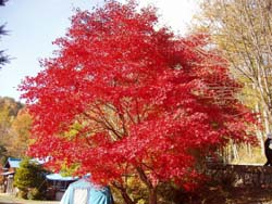 一ノ瀬キャンプ場から。真っ赤な紅葉に出会うことに。見事なものでした。