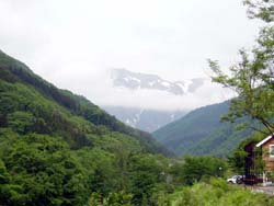 YHからの谷川岳の景色。雨上がりということもあり雲が一面に・・・。晴れたらもっと綺麗なんでしょう。 |