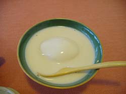 花咲の湯のレストランで食べた尾瀬豆腐。生豆腐とざる豆腐両方とも美味しく、思わず直売店を教えてもらいお土産に買いに行ってしまいました。(写真は生豆腐) |