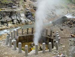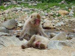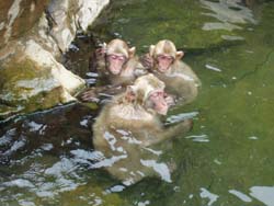 翌日は、以前友人から写真を見せてもらったり聞いてたりした湯田中・渋温泉よりちょっと奥にある『地獄谷野猿公苑』へ。 野生のお猿さんが間近で見れ、しかも温泉に入っている姿も見れるとの話を聞いていたため、これは行って見なきゃということで。 |