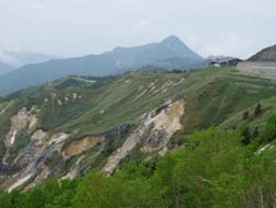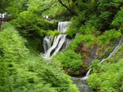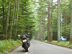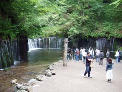 野猿公苑を後にし、志賀草津道路を走り再び軽井沢方面へ。絶景を見ながら走るが途中大型バスから出る排気ガスが辛いときも・・・。途中、田ノ原湿原・渋峠・草津を通り、有料道路を通らないと行けないからって今まで避けていた白糸の滝へ向かうことに。 |
