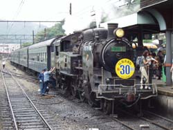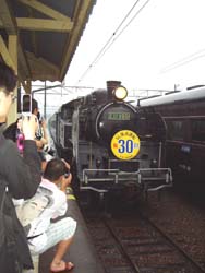 大井川鉄道・新金谷駅に蒸気機関車が入るところ。ここからものすごい人でした。