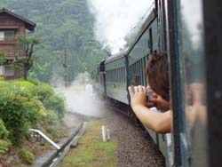 蒸気機関車に乗ったときの写真の写し方。一緒に行った友人に言われるまで気が付かなかった・・・。ひさびさに列車に乗って写真を撮ってみるが、動いている状態で写真を撮るというのが難しいものか改めて感じた。 |