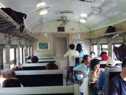 車内の様子。当時使われていたものを使用しているため、クーラーは当然ありません。窓を開けて自然の風を・・・。しかしトンネルが多かったので窓の開け閉めが・・・(汗)