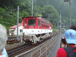 | 約1時間半で終点千頭駅に到着。ここでも写真撮影でにぎわっていました。 |