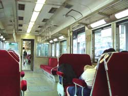 その車両の車内の様子です。窓の上にも照明がある珍しい車両だった気がした。