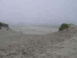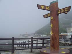 翌日、宿泊した御前崎を散歩してみた。晴れ間は見え始めていたのだが、霧で一面真っ白であった。