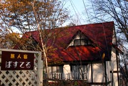 今回泊まった宿『ぱすてる』です。菅平高原のスキー場のそばにあります。