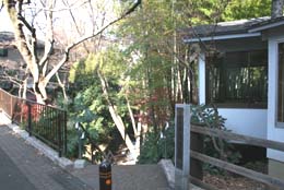 紅葉館の入口前から。こちらの温泉は湯元に近いのか硫黄の香りが強かったです。 |